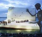 Эта гигантская книга - необычная сцена на озере Констанц в городе Брегенц, Австрия, во время фестиваля Квант Милосерд...
